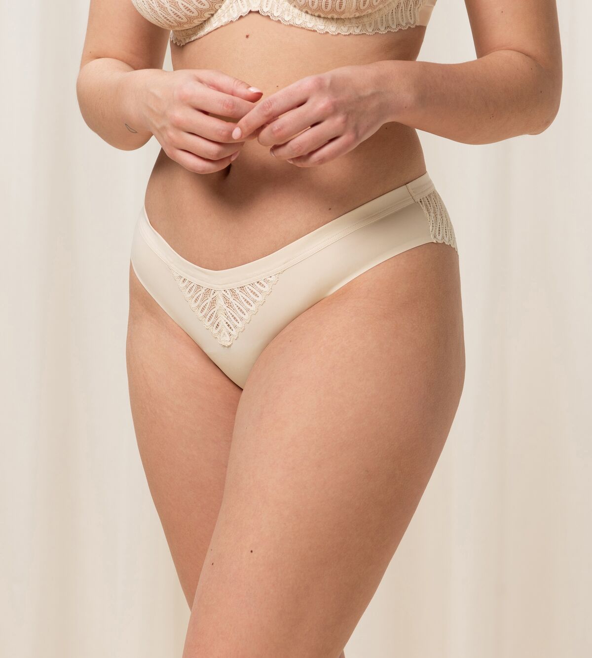 Soft microfiber and a flirty patterned lace detail makes these Brazilian briefs from the Aura Spotlight range by Triumph both comfortable and elegant.