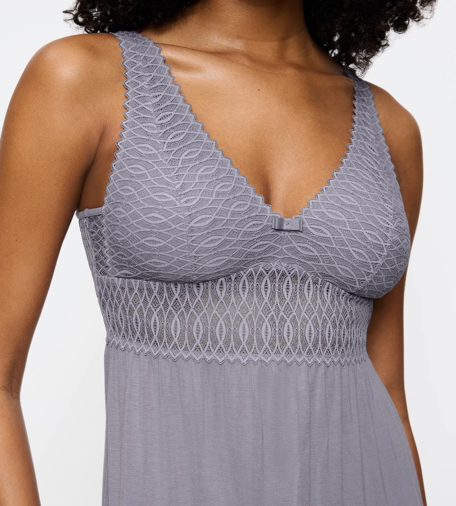 Sensual sleeveless nightdress crafted almost entirely from soft, elastic TENCEL™ Modal fabric, ensuring a flattering silhouette. The lace inserts add a touch of elegance for the perfect blend of sensuality and comfort.