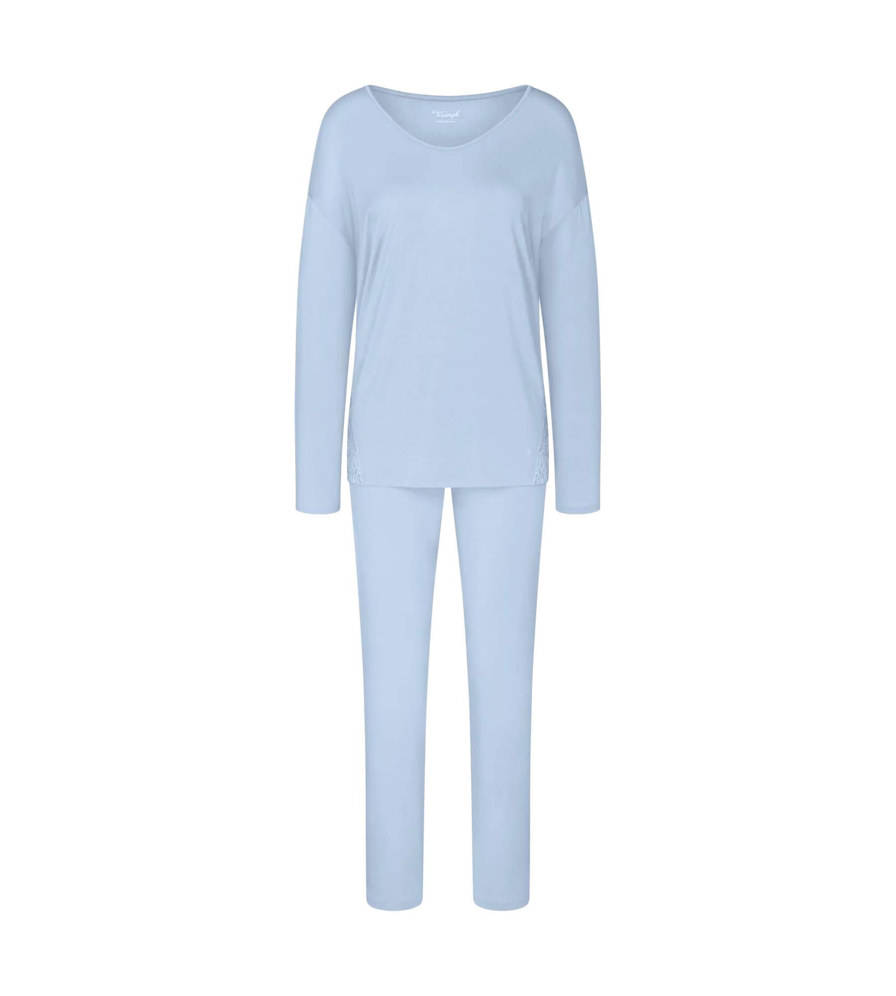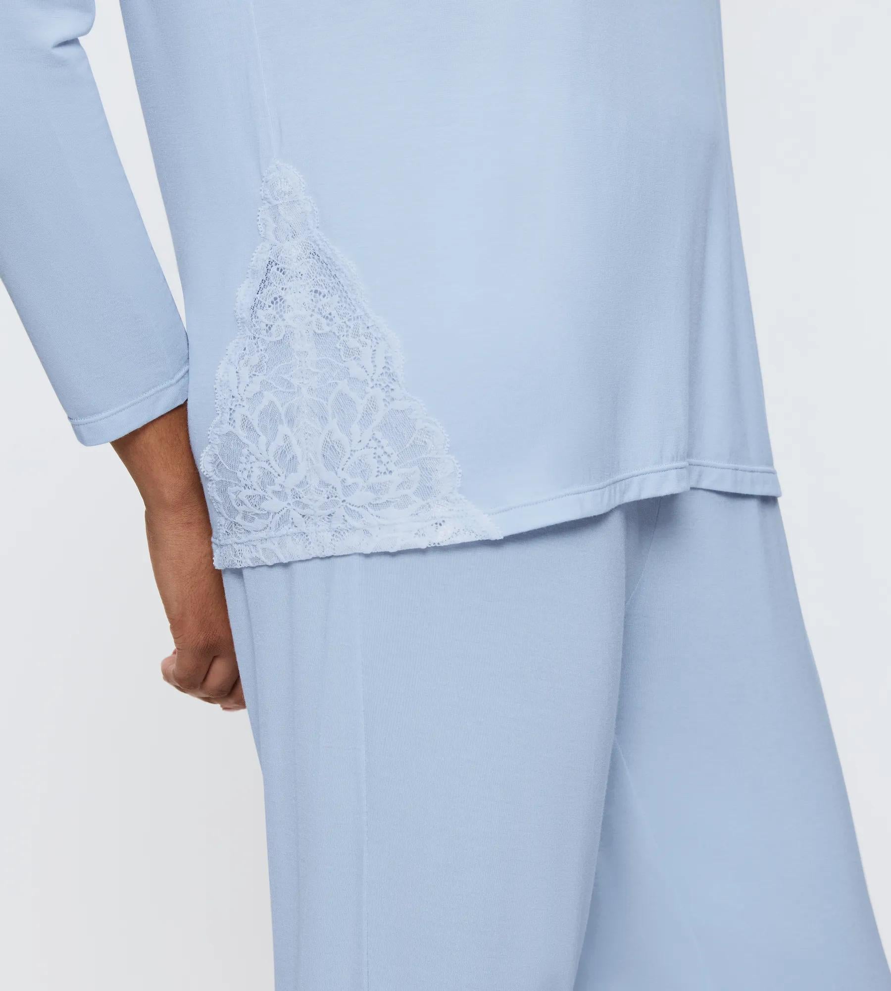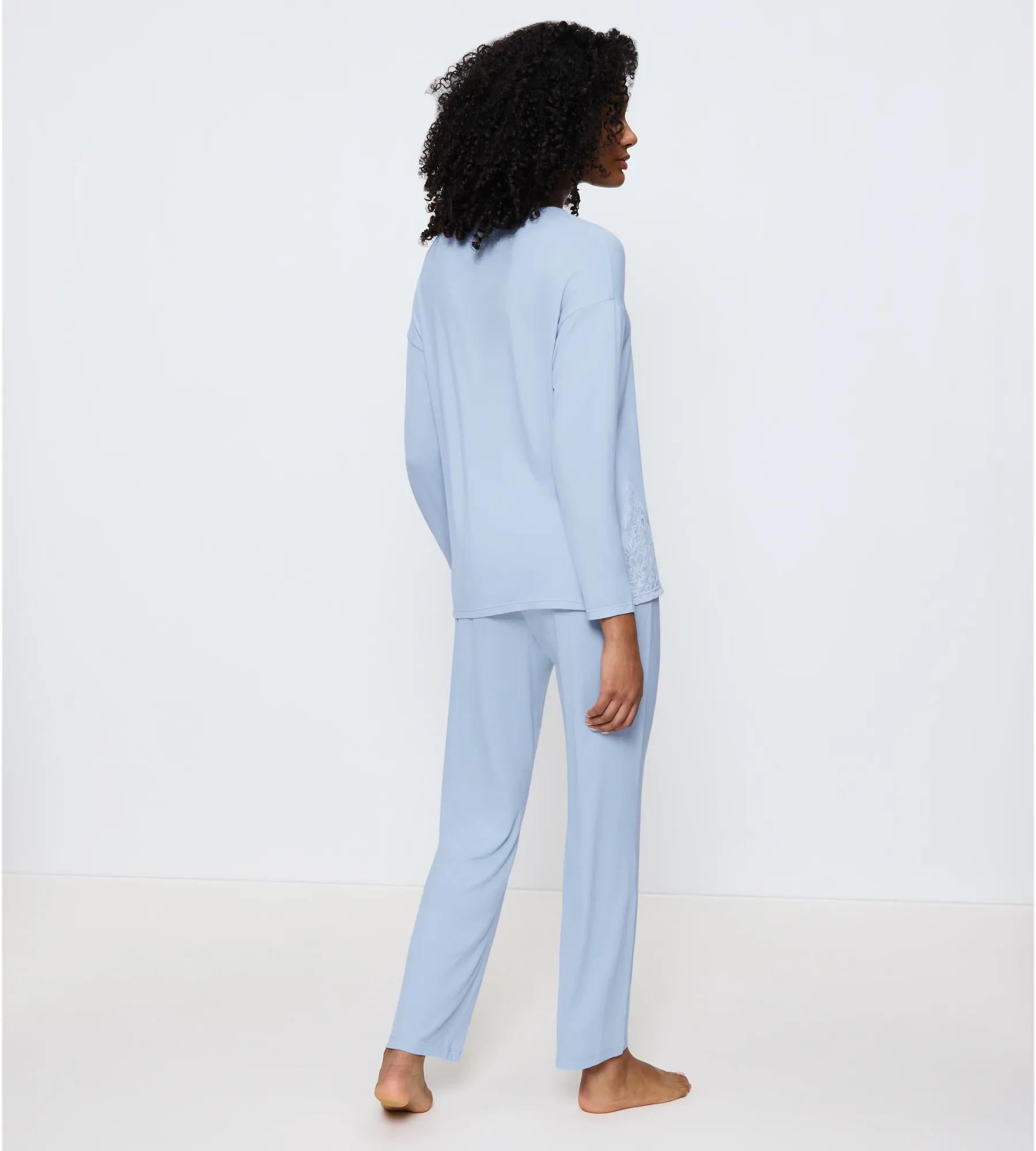 Crafted from 94% certified TENCEL™ Modal fabric, this full-length pyjama, offers a gentle touch against your skin. The long sleeves and straight-leg long pants are ideal for cooler nights, while the elastic fabric guarantees easy care and a flattering silhouette. Enriched with delicate lace inserts, it strikes the perfect balance between comfort and elegance.