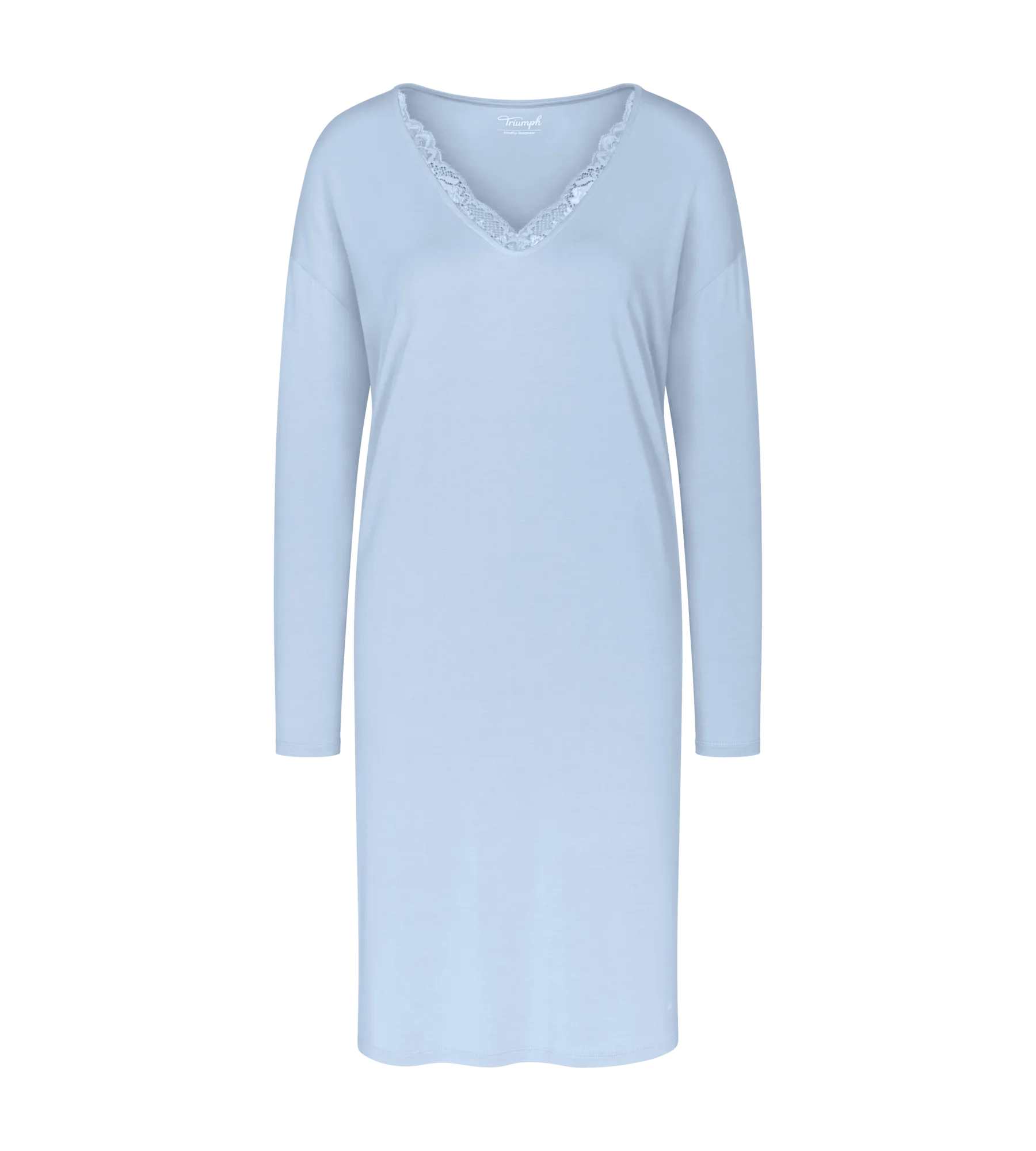 Crafted from 94% certified TENCEL™ Modal fabric, this long-sleeved nightdress offers a gentle touch against your skin. The long sleeves and knee-covering hem are ideal for cooler nights, while the elastic fabric guarantees easy care and a flattering silhouette. Enriched with delicate lace inserts, it strikes the perfect balance between comfort and elegance.