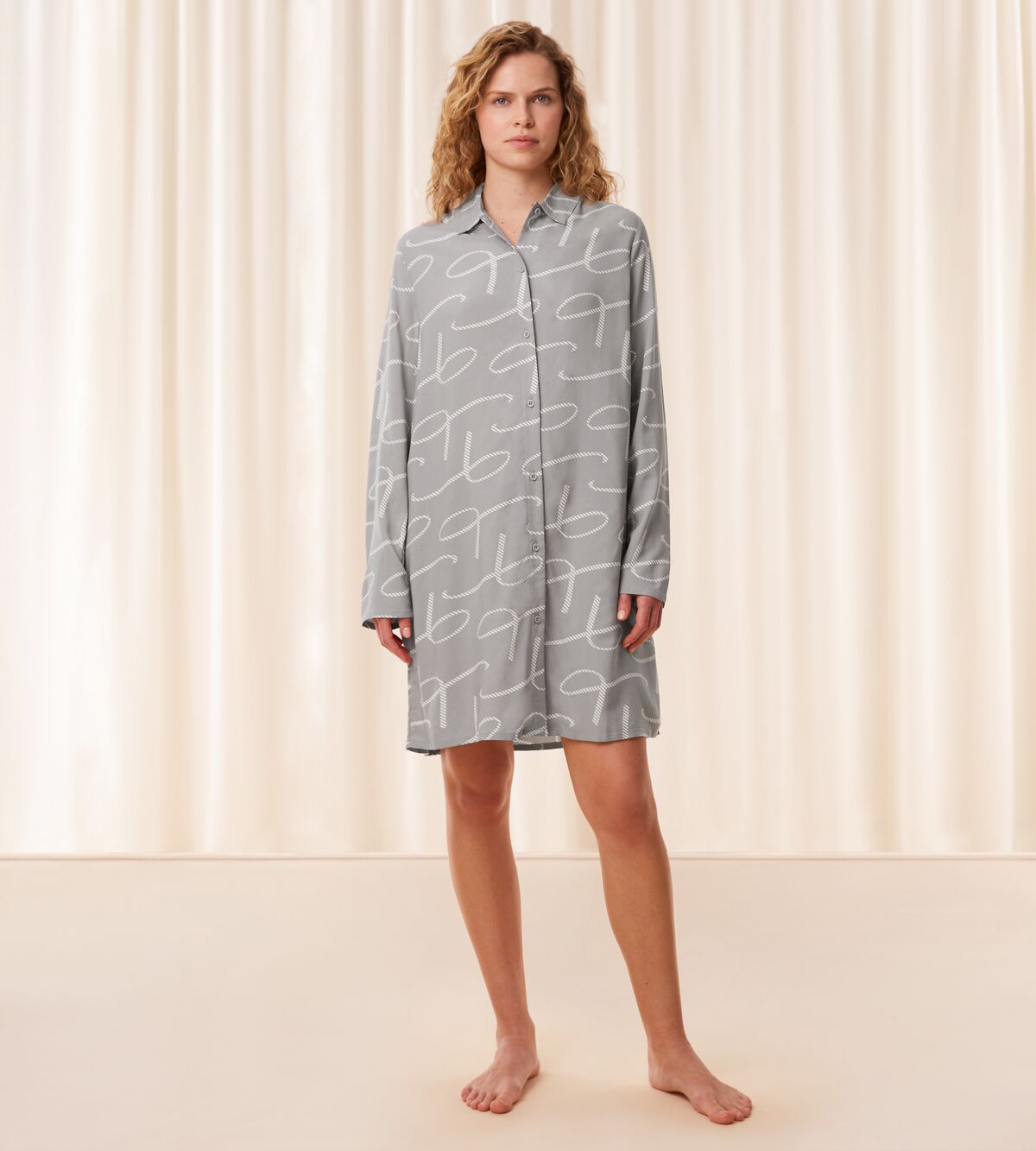 Long-sleeved boyfriend nightdress with a relaxed fit, classic collar and button placket. Designed with soft, breathable fabric. Long-sleeved nightdress Relaxed fit, classic collar and button placket Soft fabric
