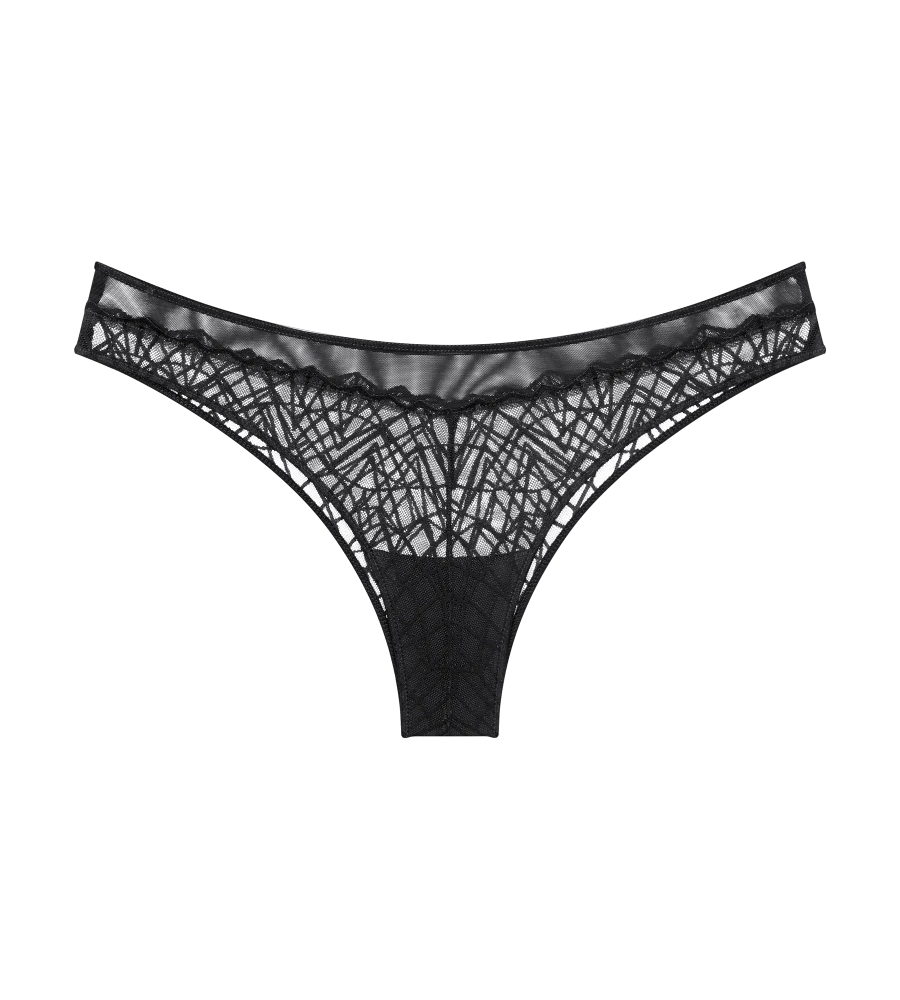 Brazilian knickers reimagined with striking graphic lace and delicate mesh detailing for the modern woman who values both style and comfort. This glamorous brief features an ultra-low coverage design that seamlessly blends sensuality with practicality. The super-thin elastic waistband and leg openings ensure invisible lines under your most form-fitting garments, delivering the confidence you need for any occasion.