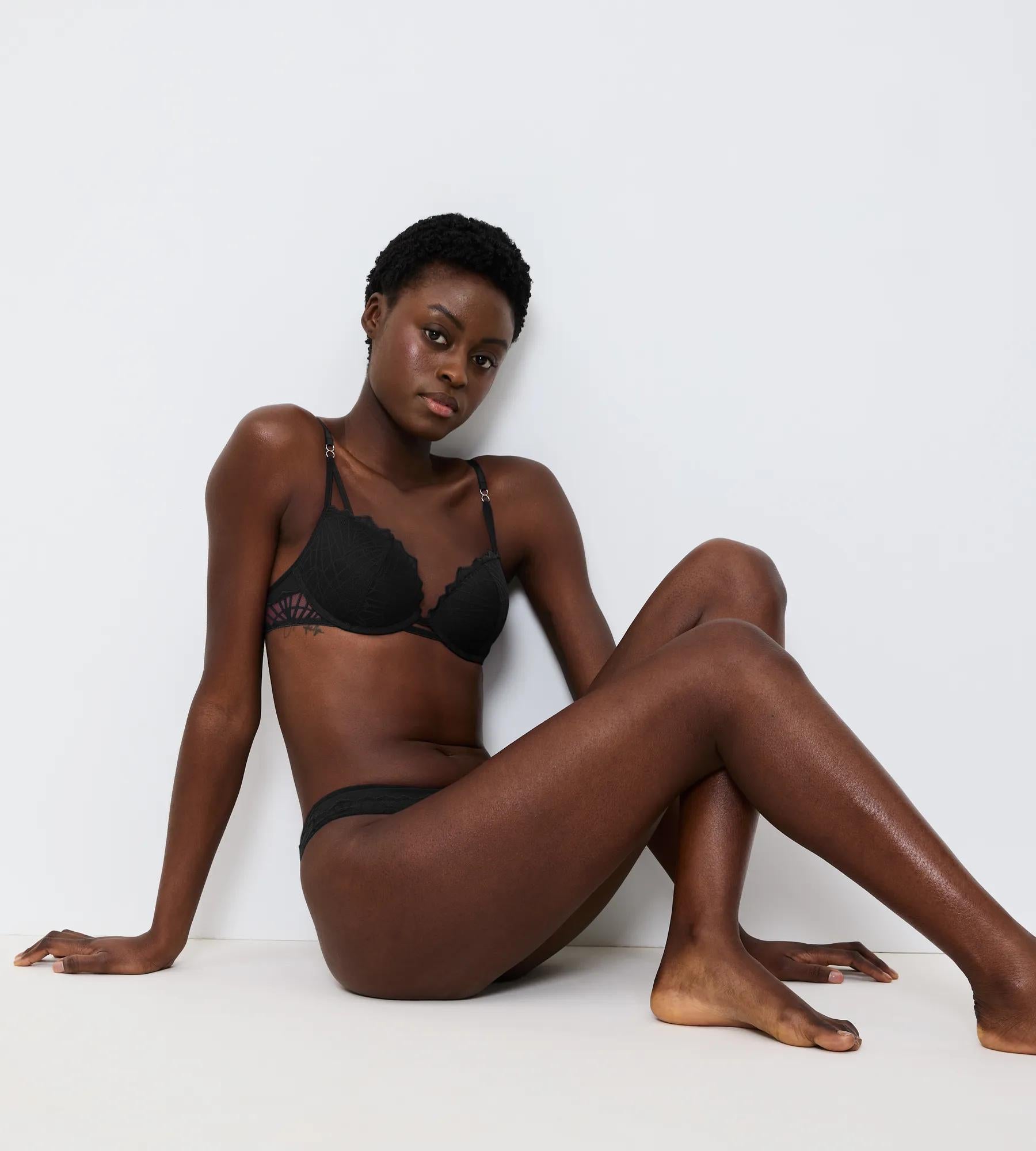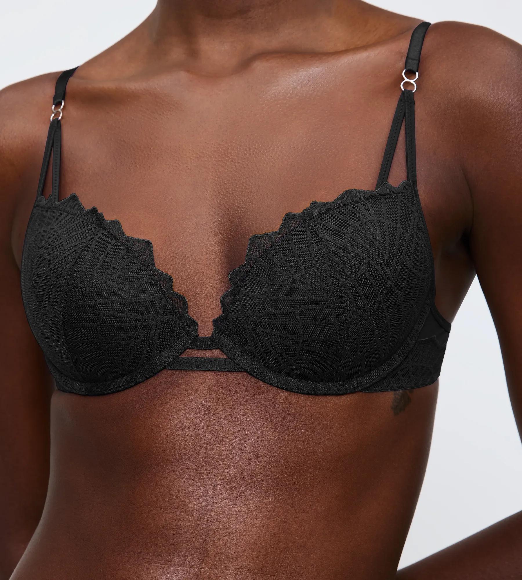 This push-up bra combines innovative design with exceptional comfort to create your most confident silhouette. The lightweight cups feature a striking graphic lace pattern that delivers both style and support, while the carefully engineered push-up construction enhances your natural shape. Experience the perfect balance of bold aesthetics and all-day wearability with this expertly crafted piece.
