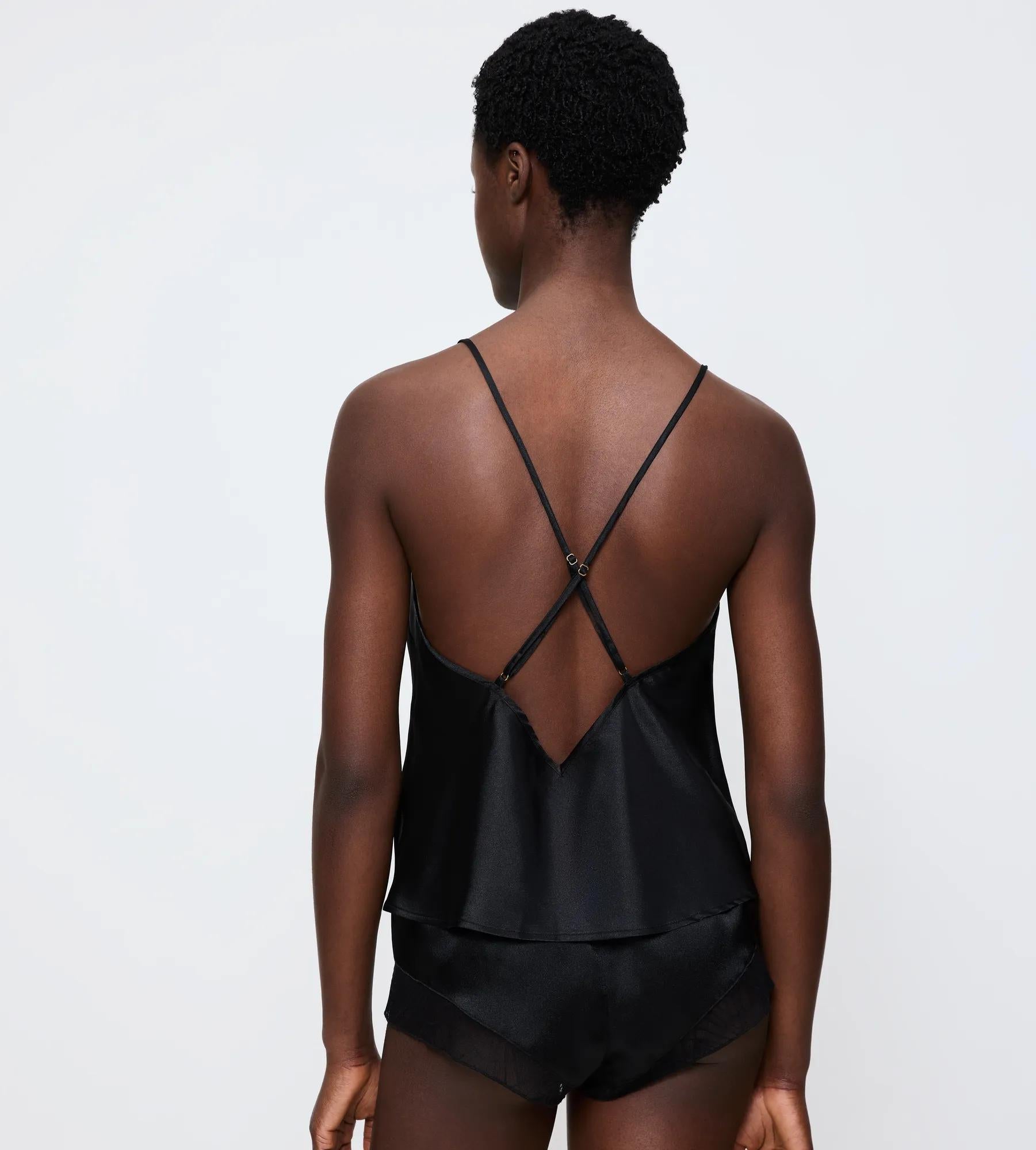 - Flattering deep-back camisole with delicate lace inserts