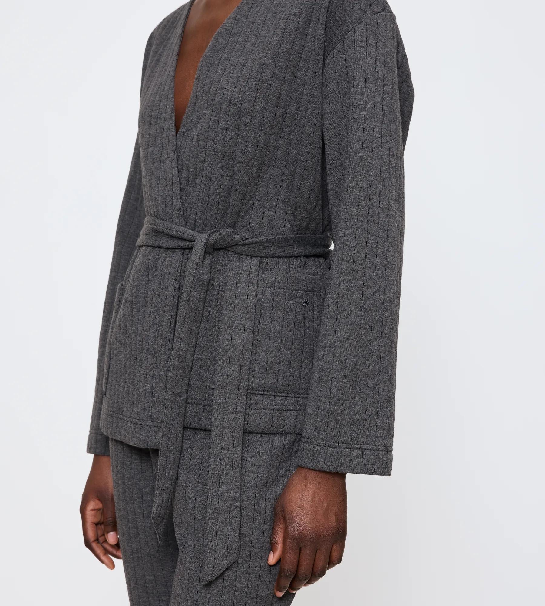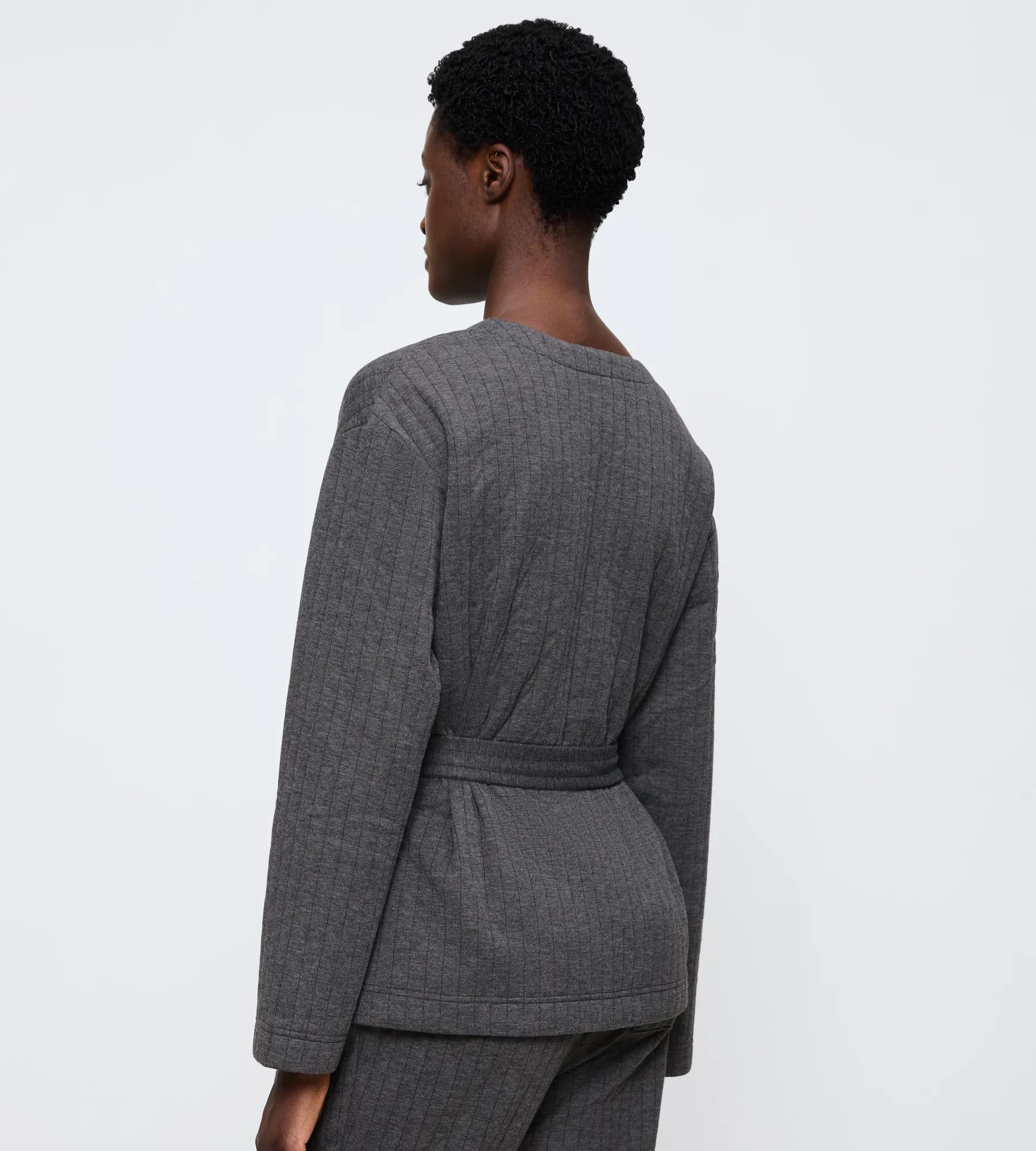 • Quilted robe top designed for lounging or layering