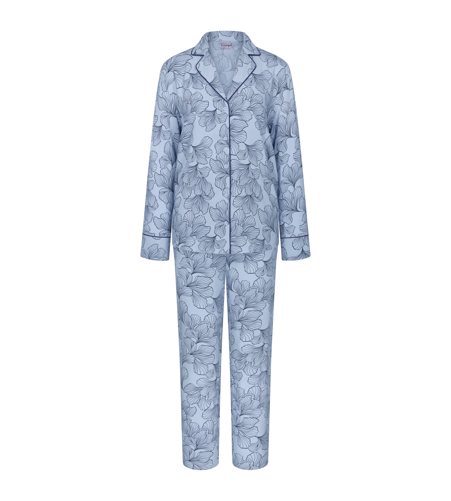 Long-sleeve boyfriend pyjama set with a relaxed fit, classic collar, and contrast piping. Designed with soft, breathable fabric.