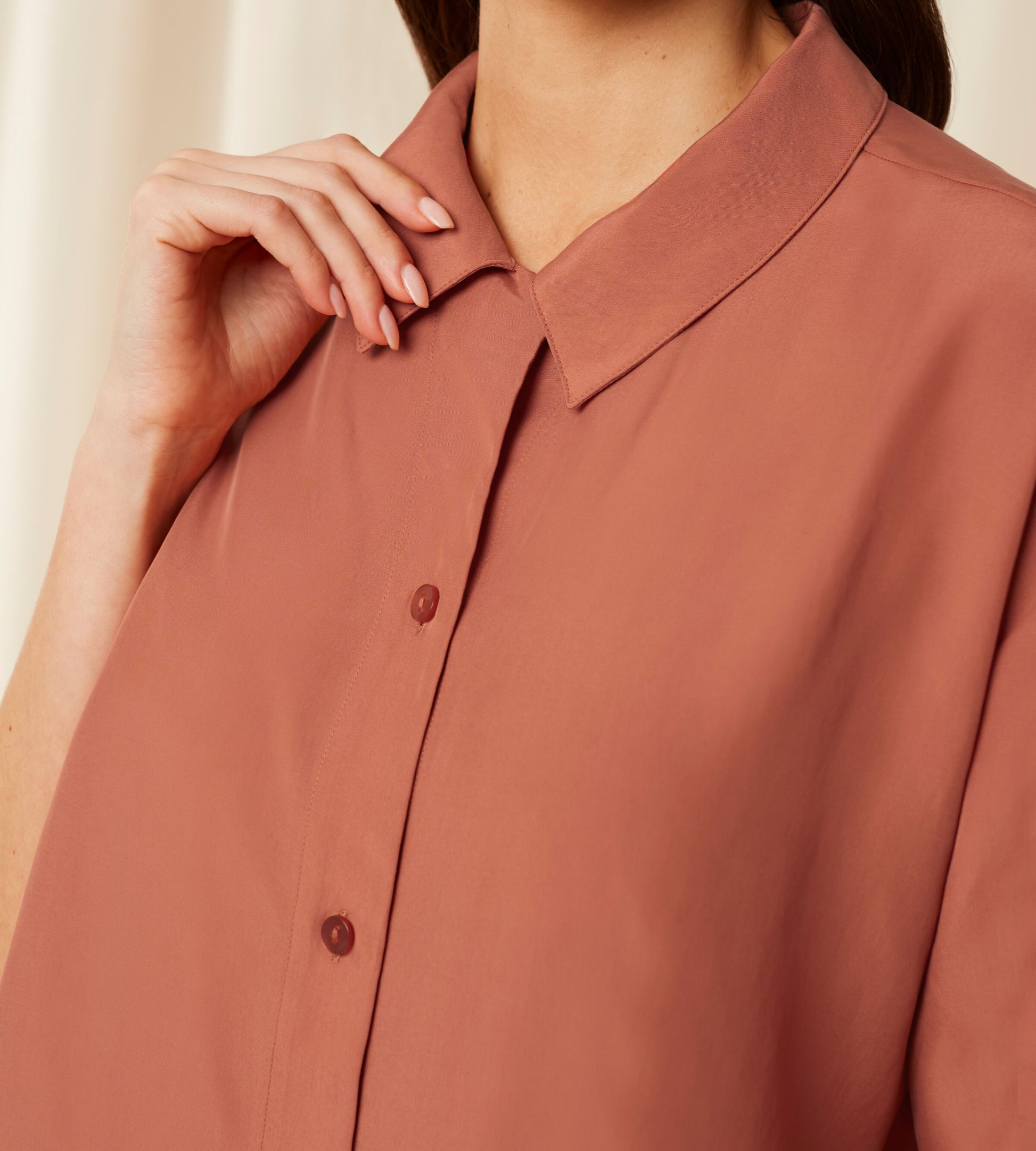 Material: 1% Lyocell Feel pampered in our easy-fitting, oversized boxy shirt with dropped, relaxed shoulders. Made of soft premium Lenzing Tencel Lyocell fabric, sandwashed for added softness. Whether you are inside or out, it manages body moisture and provides great breathability. machine wash 3C gentle,Cool Iron,Do not bleach,Do not dry clean,Do not tumble dry,Keep Away from Fire