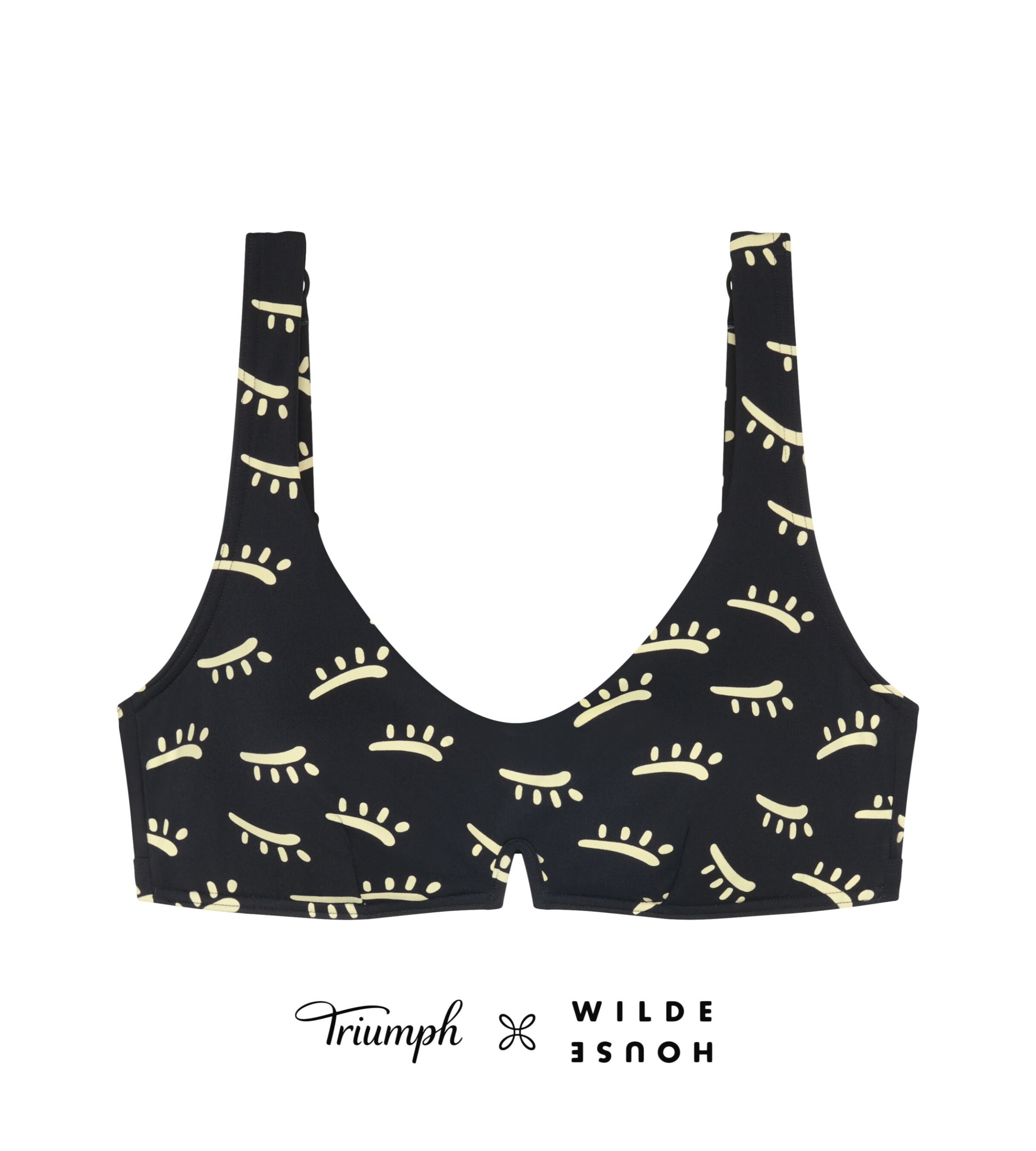 Material: 69% Polyamide, 31% Elastane A vibrant and bold padded bra by young designer WILDEHOUSE, created for your summer escapades, stretches and moves with you. Soft recycled fabric fitted with removable quick-dry cups keep you cool, comfortable, and dry all summer long. do not iron,Do not bleach,Do not dry clean,Do not tumble dry,handwash cold