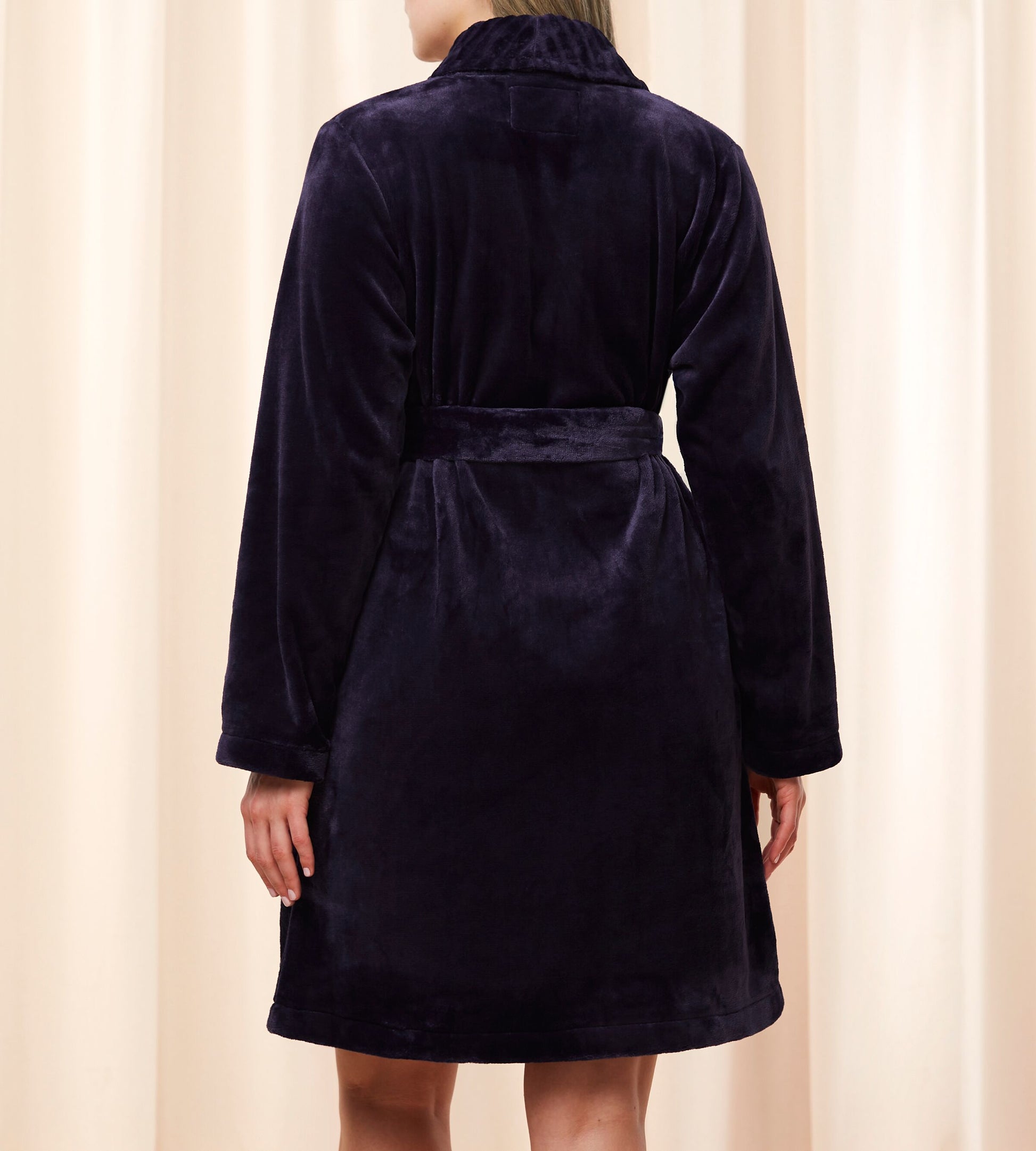 Our deeply plush robe is fluffy with a ribbed texture. It's so cosy you'll be pining for winter just to wear it. A soft tie-belt keeps you snug with a convenient satin loop at the neck for hanging. Recycled polyester winter robe Side pockets & tie-belt Fluffy fleeced ribbed collar