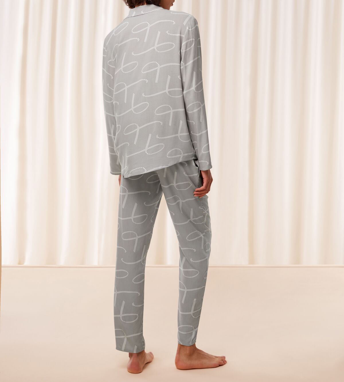 Long-sleeved boyfriend pyjama with a relaxed fit, classic collar and button placket. Designed with soft, breathable fabric. Long-sleeved pyjama set Relaxed fit, classic collar and button placket Soft fabric