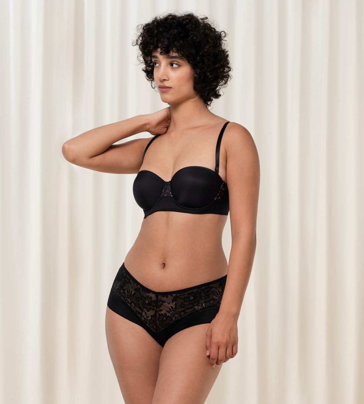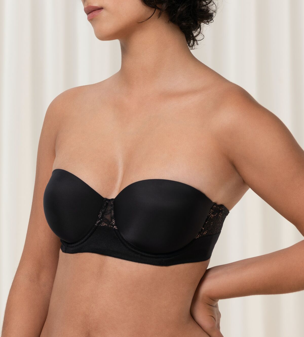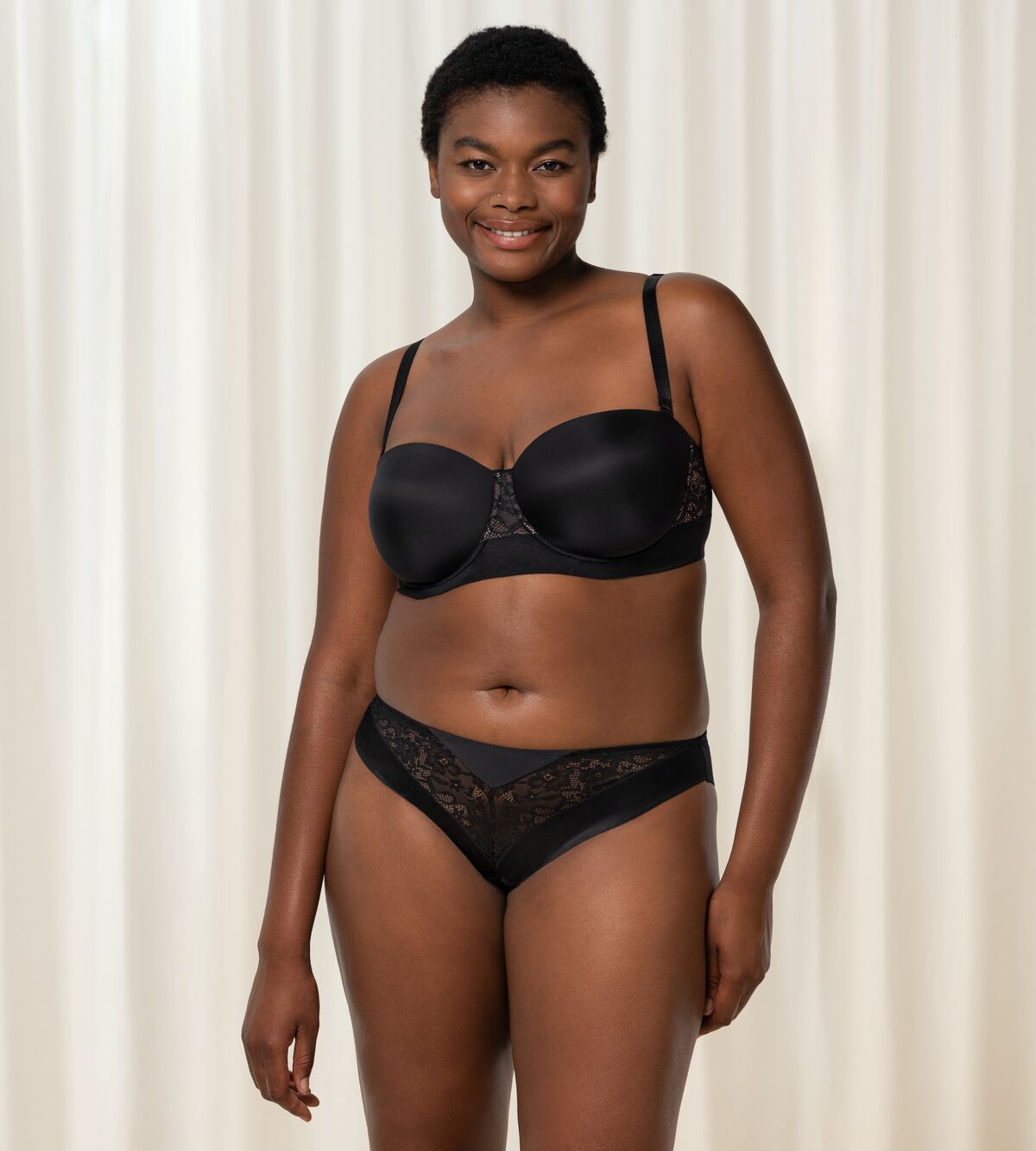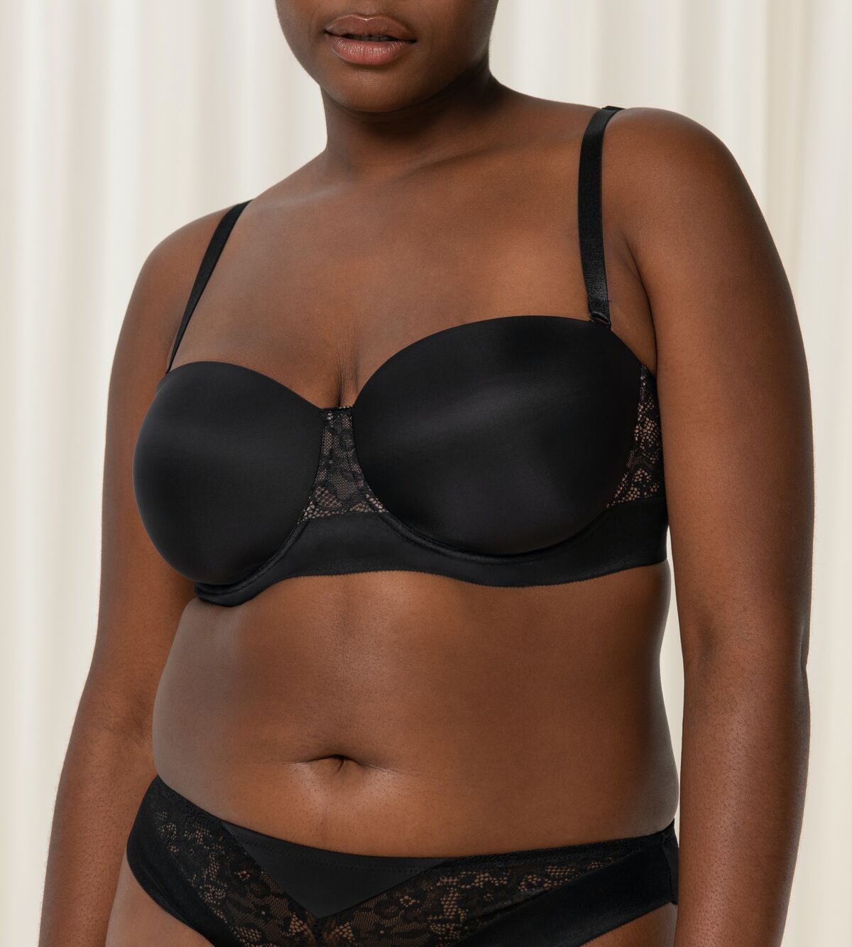 Clean moulded cups with beautifully designed floral lace combine to create this elegant Vivid Spotlight bra. This incredibly flattering style offers optimum fit and hold for larger busts up to F-cup and the silicone detail on the cradle offers further support when worn strapless.