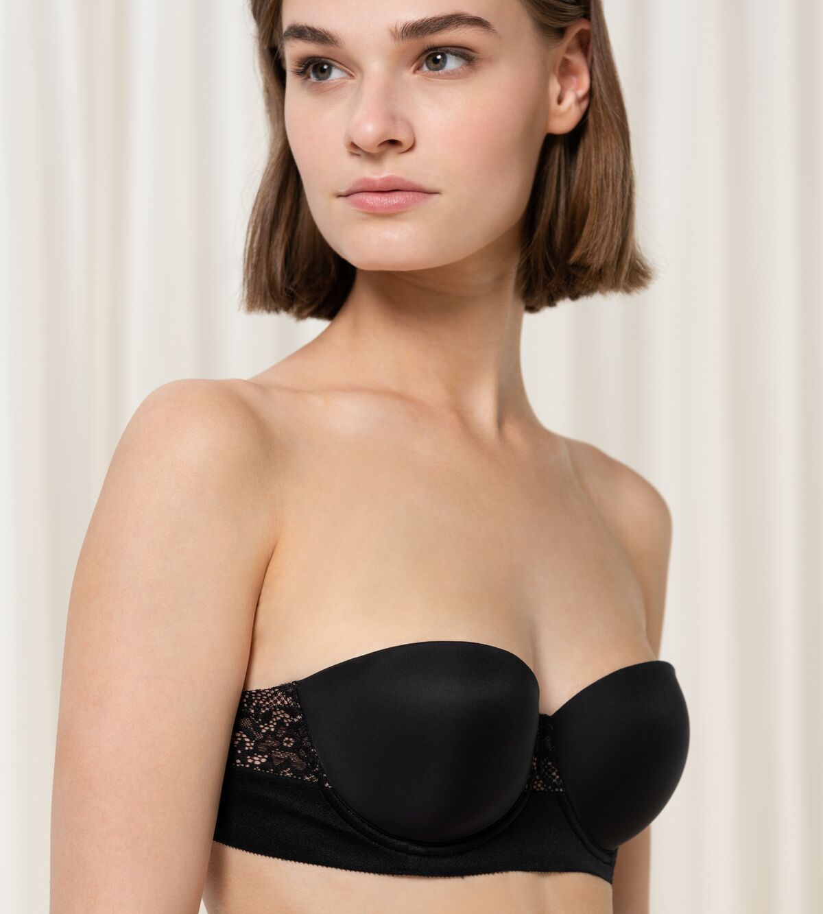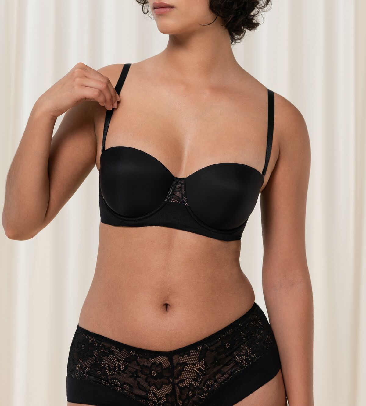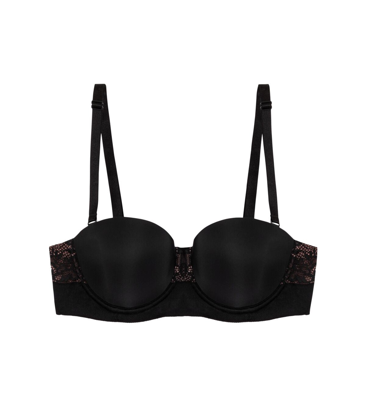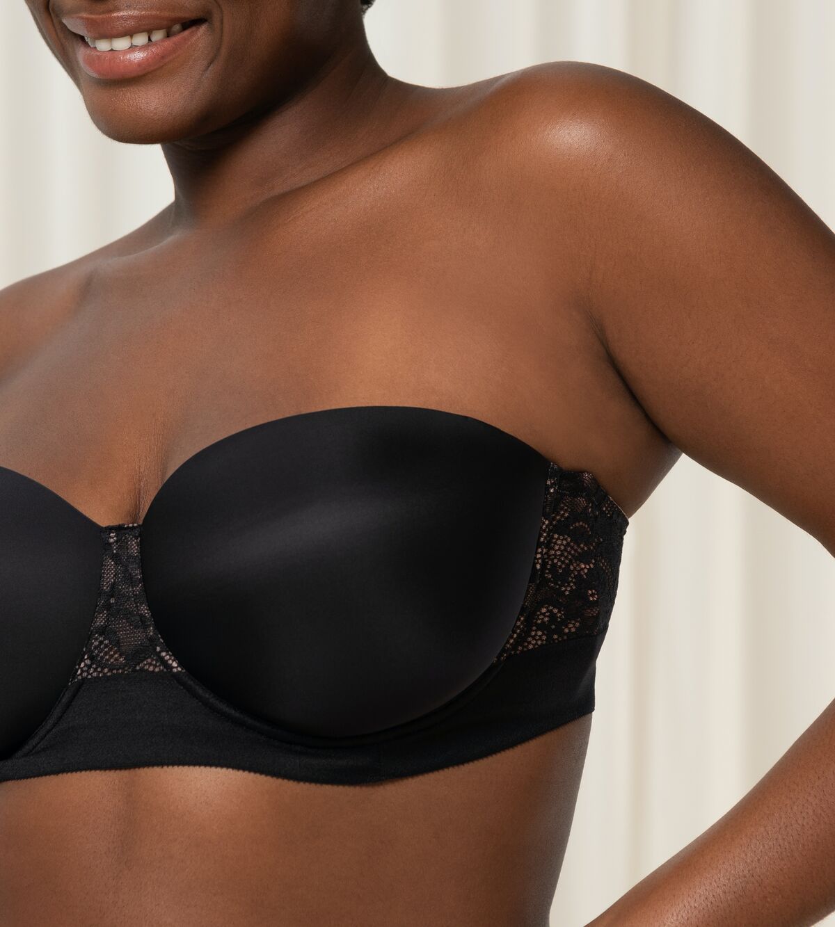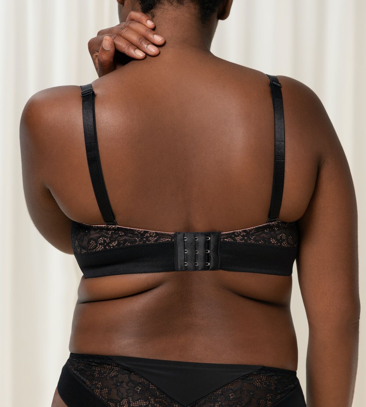 Clean moulded cups with beautifully designed floral lace combine to create this elegant Vivid Spotlight bra. This incredibly flattering style offers optimum fit and hold for larger busts up to F-cup and the silicone detail on the cradle offers further support when worn strapless.